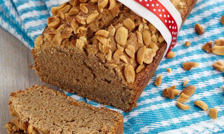 Verwarm de oven voor op 175 graden Celsius. Meng in een kom het volkorenmeel, de bakpoeder, het zout en de suiker. Doe de bananen met het vanillearoma en de plantaardige melk in een blender of mix met een staafmixer. Voeg het bananenmengsel bij de droge ingrediënten in de kom. Doe de pindakaas erbij en roer goed. Vet een cakeblik in met een bakspray of met een beetje olie. Doe het beslag erin en verdeel dit gelijkmatig over het cakeblik. Bak de pinda's grof en strooi deze over het beslag. Bak het bananenbrood gedurende 35 tot 45 minuten in de voorverwarmde oven. Controleer met een lange satéprikker of het bananenbrood gaar is. Tip: ook lekker om cacaopoeder of koekkruiden toe te voegen aan het beslag!