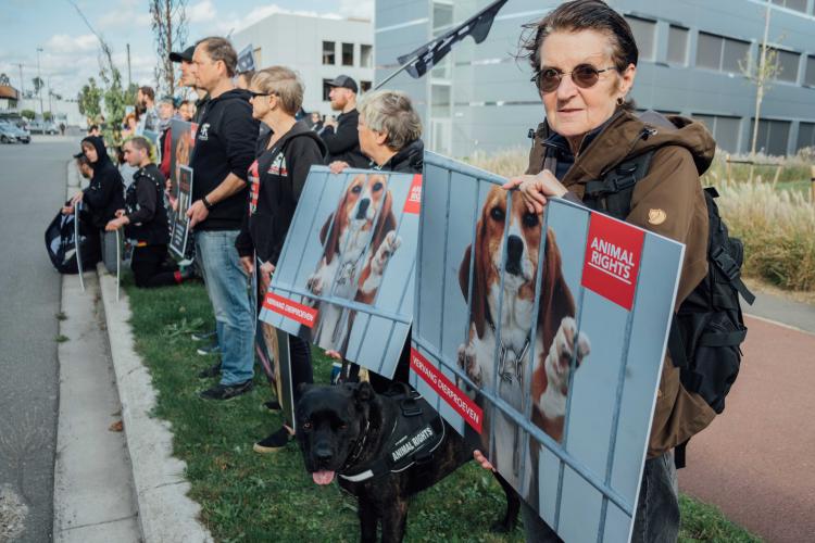 Gisteren heeft Animal Rights, samen met Bite Back, DierAnimal en All For Animals, actie gevoerd bij de gebouwen van Argenx in Gent. De actievoerders roepen het farmabedrijf op om de samenwerking met het Duitse horrorlab te beëindigen. "Wij zijn ervan overtuigd dat dierproeven onnodig zijn. Maar zelfs al aanvaard je dat ze noodzakelijk zijn, dan nog gebeuren ze hier op een manier die ingaat tegen de wet”, zegt Animal Rights campagnecoördinator Jen Hochmuth.