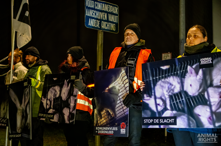 Actie bij slachthuis Lonki voor de Week van het Konijn