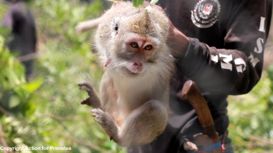 Op schrijnende beelden, vrijgegeven door Action for Primates, is te zien hoe wreed wilde langstaartmakaken uit de natuur van Indonësie worden geplukt. Ze worden gevangen en naar China en de Verenigde Staten verstuurd voor dierproeven. Ondertussen staan deze apen op de Rode Lijst van bedreigde diersoorten. Animal Rights steunt de oproep van One Voice en Action for Primates om een einde te maken aan de wrede vangst en export van apen voor dierproeven.