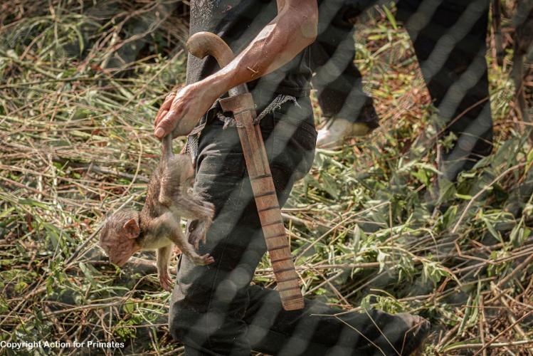 Honderden wilde langstaartmakaken werden gevangen en met geweld weggerukt uit hun natuurlijke habitat en familiegroepen. Gevangen in netten probeerden de apen fanatiek te ontsnappen, daarbij werden ze aan hun staart getrokken en op de grond vastgepind. Ze werden ruw behandeld en met hun armen op hun rug geduwd, met het risico op ontwrichting en breuken. De gevangen apen werden in zakken gegooid en verzegeld of in houten kratten gepropt.