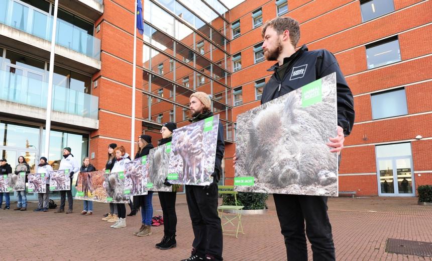 Naar aanleiding van de drijf- en drukjachten die worden georganiseerd protesteerde Animal Rights vrijdag samen met BiteBack in Hasselt. Vorig jaar werden er in Limburg nog 1.400 everzwijnen gedood tijdens drijf- en drukjachten in Limburg. Dit jaar zullen het er naar schatting 2.000 zijn, mede door het toegenomen aantal jachten. Animal Rights vindt het onacceptabel dat onschuldige dieren de kogel krijgen daarom hebben we een bezwaarschrift ingediend bij minister Zuhal Demir.