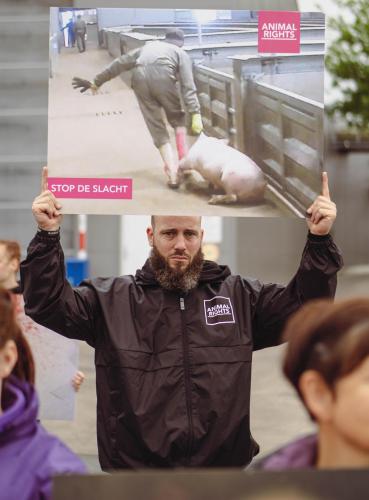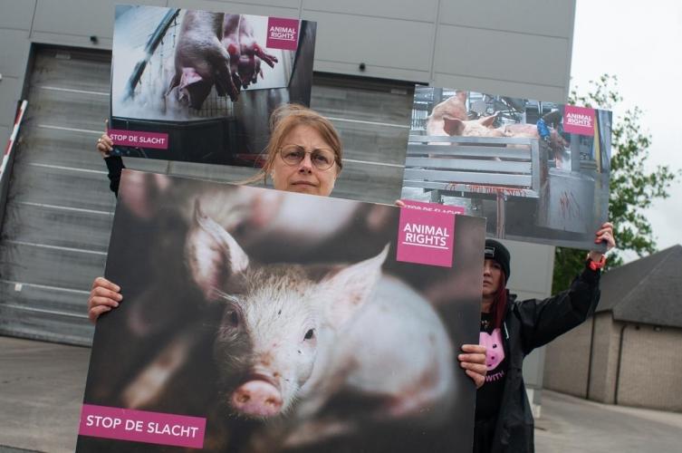 Animal Rights en GAIA voerden actie bij slachthuis Torhout