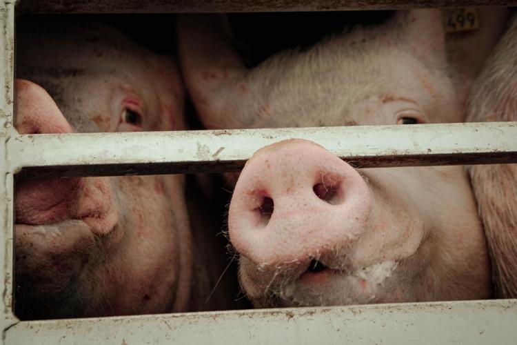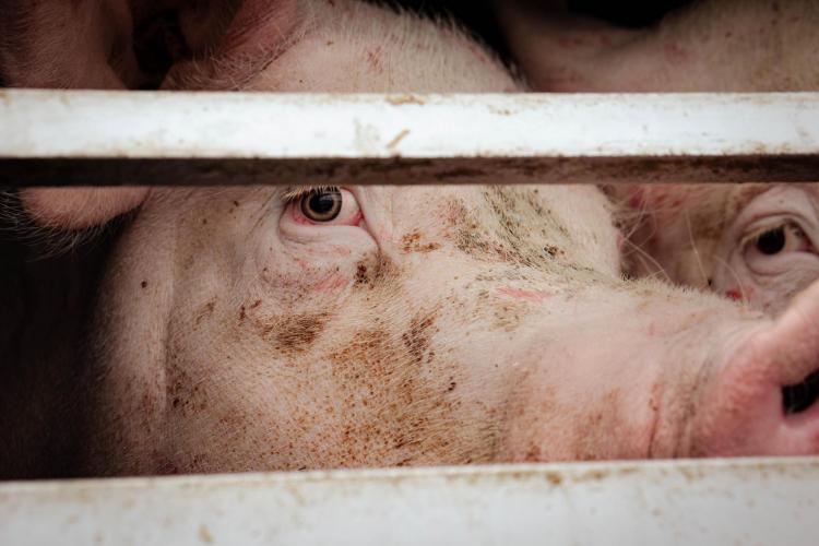 Els Van Campenhout: "Recente inspectierapporten tonen aan dat varkens hier nog altijd niet correct worden verdoofd. Na hun miserabele leven worden ze op een al even miserabele manier naar deze horrorplek gebracht om een gruweldood te sterven. Een fel contrast met de afbeeldingen van vrolijke varkentjes die op de vrachtwagens prijken.”