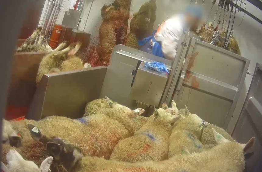 De schapen in de beelden zitten al voor de slacht onder het bloed van hun soortgenoten, mogelijk zelfs familieleden. Ze kunnen zien, horen en ruiken hoe hun lotgenoten sterven, terwijl ze wachten op hun beurt. Je ziet de schapen op elkaars rug klauteren om zo ver mogelijk weg te komen van de slachtplek. Dit moet enorm stressvol voor deze dieren zijn.