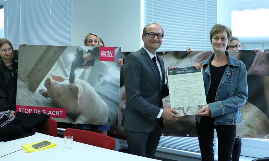 Animal Rights overhandigt 175.000 handtekeningen voor sluiting slachthuis Tielt