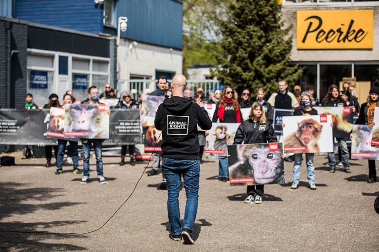 Animal Rights protest bij apenhandelaar Hartelust op Wereldproefdierendag