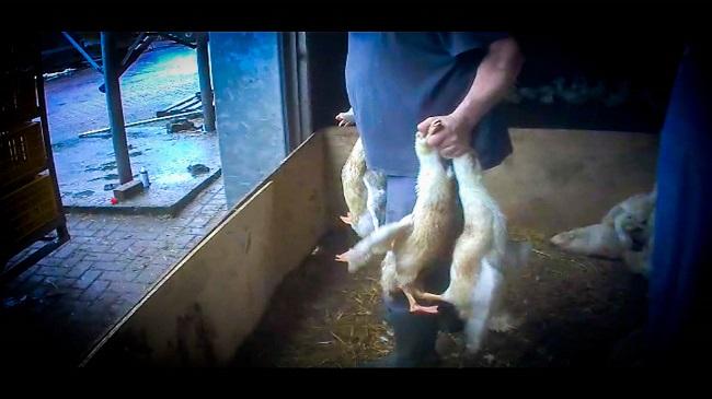 In de beelden is te zien hoe eenden ruw worden gegrepen en in kratten gesmeten; hoe er met ze wordt gegooid, hoe ze worden plat gestampt en dood geslagen of creperen in een afvalemmer.