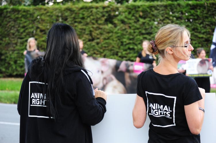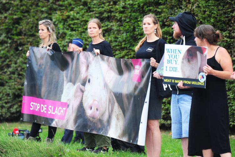Op woensdag 28 augustus voerde Animal Rights samen met The Save Movement en All For Animals actie voor de poorten van het varkensslachthuis in Tielt, dat twee jaar geleden bekend werd dankzij de gruwelijke undercoverbeelden die Animal Rights naar buiten bracht. Met de actie maken de organisaties samen een statement tegen het dierenleed dat gepaard gaat met het consumeren van vlees en willen ze de aandacht vestigen op de momenteel lopende rechtszaak tegen zowel de CEO van het slachthuis als de vennootschap achter het bedrijf waarvan de uitspraak zal volgen op 25 november van dit jaar. “Met deze actie willen we de dieren een laatste blijk van mededogen geven voor ze het slachthuis binnen gaan. En uiteraard willen we met onze aanwezigheid ook opnieuw de sluiting eisen van het Tieltse slachthuis, waar jaarlijks 1,5 miljoen dieren sterven”, zegt Animal Rights campagnecoördinator Els Van Campenhout. 1 2 3