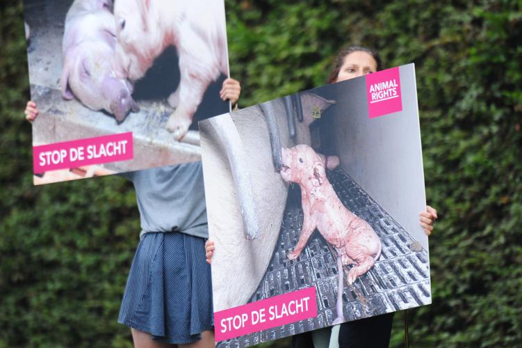Animal Rights voert actie bij horrorslachthuis Tielt
