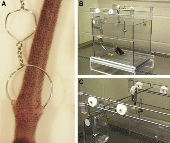 Dit is een speciale muizenkooi die in een centrifuge wordt geplaatst om verhoogde zwaartekracht te simuleren. Het gaat hier om precies dezelfde kooi die eerder al is gebruikt geweest aan boord van de Space Shuttle en het International Ruimtestation, ISS, waar muizen voor een langere tijd aan gewichtloosheid blootgesteld werden.2