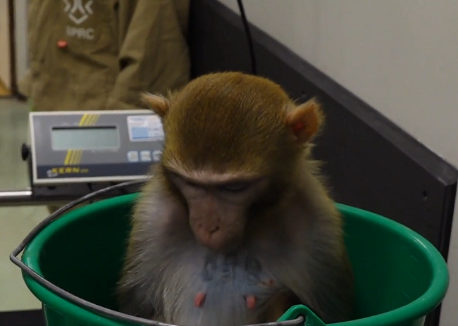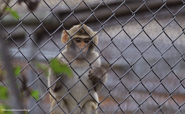Deze maand maakte Animal Rights nog trieste beelden van de apen die momenteel in het BPRC opgesloten zitten. Er is onder andere een jong aapje te zien dat het plastic van de kooi vasthoudt. “Dit zijn aapjes die nog niet weten welke gruwelijke hersenexperimenten er op hen te wachten staan. Ze zitten op elkaar gepropt achter tralies en gesloten laboramen in een onnatuurlijke en deprimerende omgeving. Op elk moment kunnen willekeurig aapjes van hun familieleden worden weggerukt en verkocht aan een labo”, aldus Hochmuth.