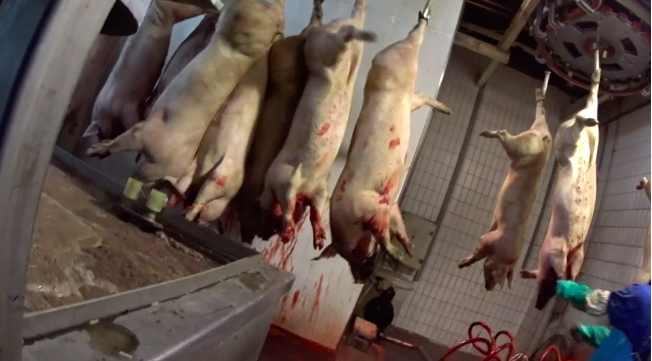 We zien in zowel de beelden als in de inspectierapporten dat varkens al op de ophangtafel bijkomen, het uitschreeuwen opgehangen aan een ketting, en met doorgesneden keel maar bij bewustzijn het broeibad ingaan.