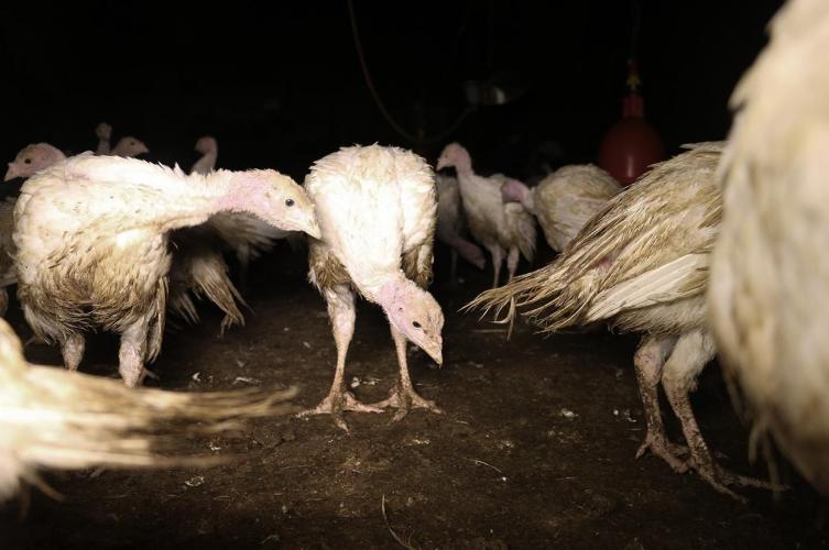 We know these images are not 'extreme' or 'exceptional'; footage from the poultry industry that was made in recent years confirm that. These barns are hell on earth for turkeys. Van Campenhout: "The turkey industry is reprehensible. Most turkeys never come out of the enclosed barns until they are transported to the slaughterhouse. Turkey's beaks are still routinely burned off. These turkeys are selected for rapid growth and extensive muscle mass. It is therefore no wonder they have so many leg problems." On top of all that,Turkey barns are regularly infected with bird flu and 'culled' as a result.