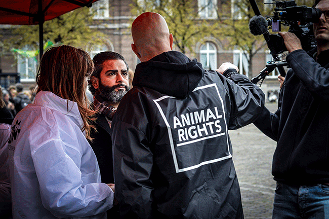 “Danny Ghosen heeft ons uitgebreid gevolgd om zo een duidelijk beeld te krijgen van Animal Rights en de mensen die er achter zitten,” aldus Animal Rights directeur Robert Molenaar. “Hij heeft interviews bij actievoerders thuis afgenomen en op ons kantoor in Den Haag. Maar we zijn ook naar een opvangcentrum voor afgedankte dieren gegaan om daar de undercoverman van het varkensslachthuis Tielt te interviewen.”