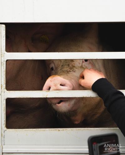 Bij exportslachthuis De Coster in Ruiselede is het niet anders: een gestresseerd varken wordt verschillende meters voortgesleept aan een ketting rond de voorpoot. Een varken met een dijbeenbreuk tracht men overeind te trekken en wordt vervolgens versleept omdat het in de weg ligt. Bij panne worden de dieren in het proces - 20 minuten in de verdovingsgondel - aan hun lot overgelaten omdat de lunchpauze belangrijker is voor het personeel.