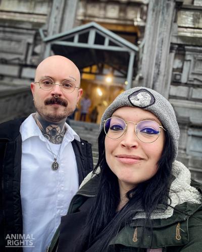 Tijdens de actie werd een transport met konijntjes aangevoerd. De activisten brachten een laatste groet aan de slachtoffers die amper twaalf weken na hun geboorte eindigen in het slachthuis. De dieren zaten in de plastic transportbakken van de vrachtwagen, sommige dieren waren nat. De konijnen staan doodsangsten uit en lijden daarbij ook nog eens onder tocht en koude bij het transport: er zitten metalen panelen voor de transportbakken en er zijn geen zeilen voorzien. Dit moment is het eerste en meteen het laatste moment dat de dieren de buitenlucht kunnen inademen tijdens hun korte, miserabele bestaan.