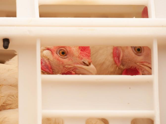 Op een van de locaties waar gefilmd was ging het niet om leghennen die eieren produceren voor in de supermarktschappen of als ingredient in koekjes, sauzen, pasta en dergelijken, maar om ouderdieren. Deze hennen (opgesloten met ongeveer 9% hanen) produceerden de bevruchtte eieren waaruit vleeskuikens geboren worden.