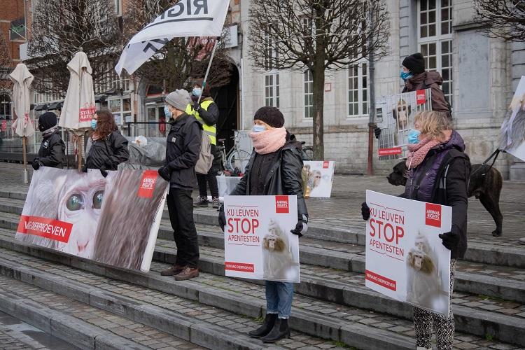 Animal Rights voerde gisteren terug een protestactie in Leuven om aandacht te vragen voor de 40-tal proefapen die opgesloten zitten aan de universiteit. Het doel is de vrijlating van alle proefapen uit het proefdiercentrum. Verder wil Animal Rights voorkomen dat de KU Leuven op het einde van de rit de proefapen afmaakt in plaats van ze naar een opvangcentrum te sturen.