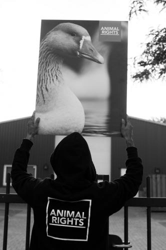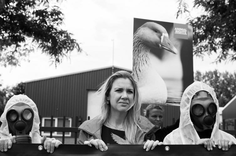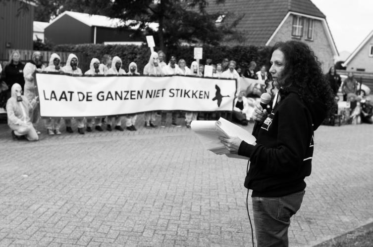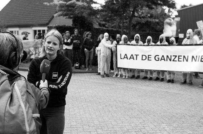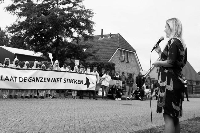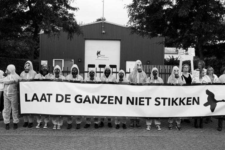 Gisteren demonstreerden zo'n honderd activisten voor de poort van Duke Faunabeheer in Lelystad tegen de jaarlijkse ganzenvergassingen. Animal Rights, Dierbaar Flevoland en Fauna4Life organiseerden de demonstratie en werden hierbij gesteund door de Partij voor de Dieren. Het vergassen van ruiende ganzen -die niet weg kunnen vliegen- en hun jongen midden in het broedseizoen is wreed en immoreel en de dierenrechtenorganisaties willen dat hier zo snel mogelijk een einde aan komt.