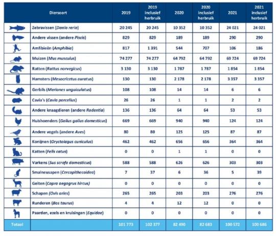 De aantallen van 2021 bevinden zich daarentegen op hetzelfde niveau van deze van 2019, toen er 101.773 dierproeven werden uitgevoerd. De sterke daling genoteerd in 2020 was een rechtstreeks effect van de COVID-19 pandemie. In de periode midden maart – midden april 2020 mochten er immers geen nieuwe dierproeven of projecten met proefdieren opgestart worden.