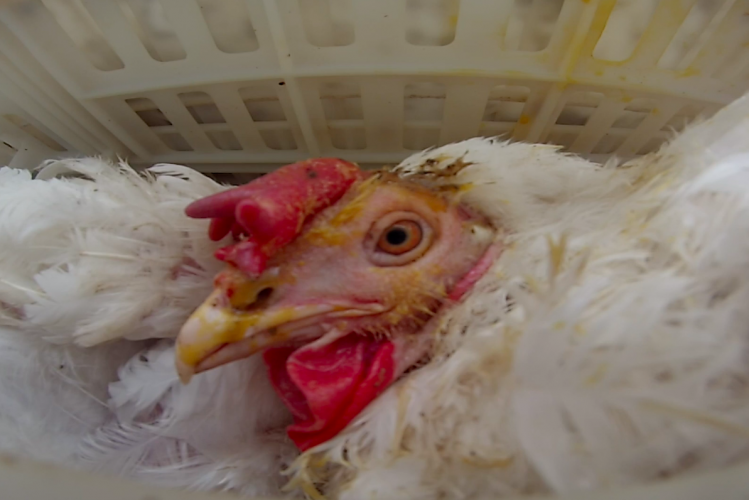Mijn naam is Ellie en ik ben moeder van vele kuikens, van zo’n 140 om precies te zijn. Het liefst van al zou ik mijn eitjes zelf uitgebroed hebben en mijn kuikentjes lekker onder mijn vleugels groot laten worden. Mijn hart doet pijn als ik denk aan al mijn baby’s die ik nooit kon warm houden onder mijn vleugels. Elk ei dat ik ooit gelegd heb werd van me weggenomen en naar broeierijen gebracht. Mijn kuikentjes werden geboren in grote broedkasten. Ze zochten me toen ze piepend uit hun ei kropen. Na zes tot zeven weken in een stal zonder daglicht werden ze naar het slachthuis gebracht en stierven een trieste dood toen hun keel werd overgesneden. Hun versneden lichamen lagen in de winkelrekken met labels als ‘kipfilet’, ‘kluiven’ en ‘vleugeltjes’.