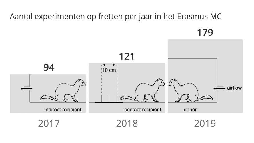 Volgens de laatste cijfers voerde het Erasmus 13.786 dierproeven uit op muizen, ratten, cavia’s, gerbils, hamsters, fretten, apen, varkens, kippen, vogels en vissen. Molenaar: “Het gaat om voelende, levende wezens die ingezet worden alsof het gebruiksvoorwerpen zijn. Dat kan en moet anders!”