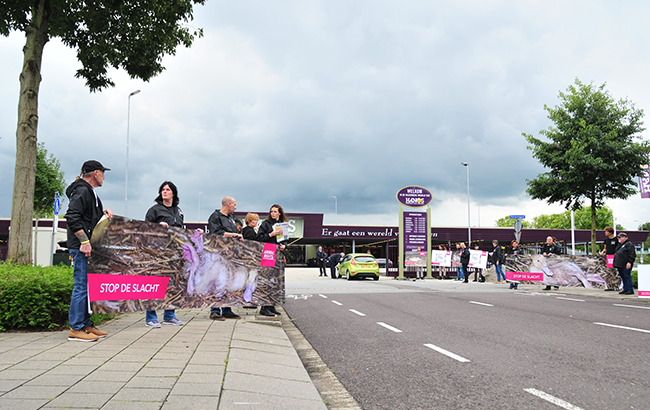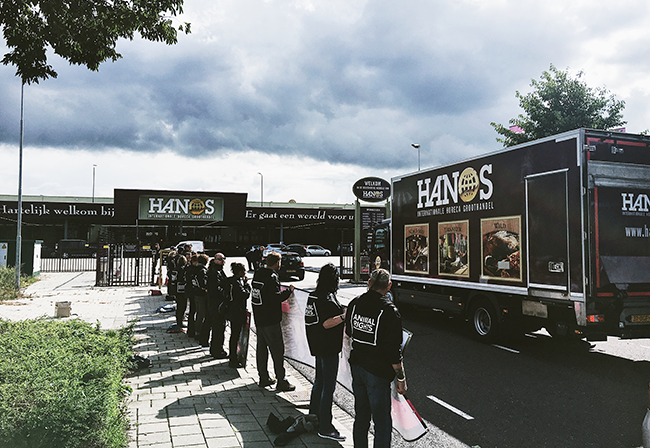 HANOS liet eerder in een reactie aan Animal Rights weten de actie te betreuren en vroeg ons met met klem om de demonstratie af te blazen. Extra beveiligers controleerden alle klanten op hun pas en een manager stond twee uur lang onrustig voor de ingang. De klanten moesten door een fuik van activisten om binnen te komen. Toch was er veel begrip voor onze actie en velen namen de flyer aan.
