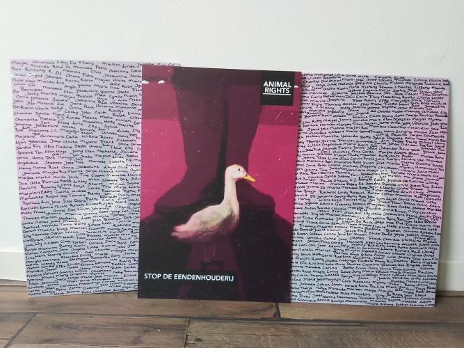 Ondertussen zet Animal Rights de strijd tegen de eendenindustrie voort. Deze week bieden we ruim drieduizend handtekeningen aan de minister van Landbouw aan.