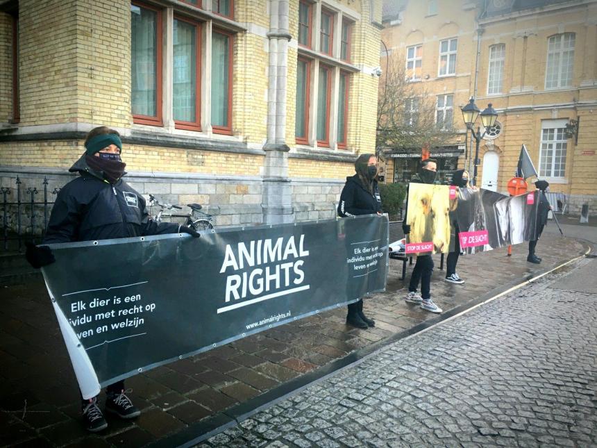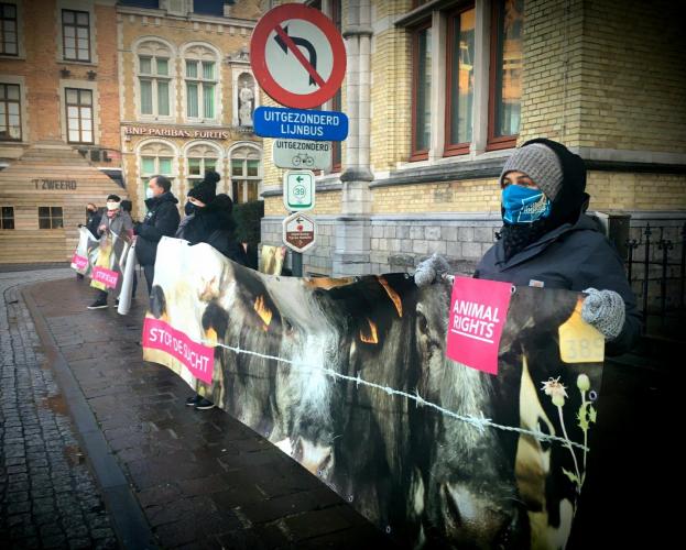 Animal Rights demonstreerde met een stille protestactie voor de deuren van het gerechtsgebouw om aandacht voor de rechtszaak en gerechtigheid voor de dieren te eisen. Zo'n vijftien demonstranten waren aanwezig met borden en spandoeken waarop de gezichten van de runderen te zien zijn. Tijdens het vonnis op 22 februari zal Animal Rights opnieuw demonstreren voor de deuren.
