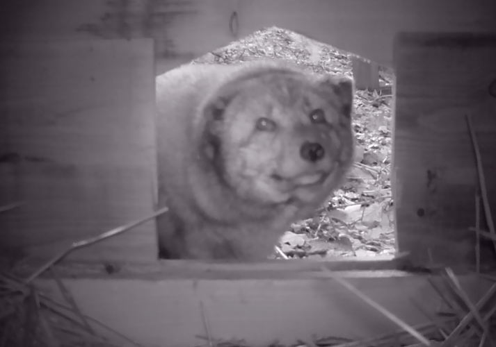De dieren hadden een rustige eerste nacht en ontdekken op hun eigen tempo het grote verblijf van 600 vierkante meter. De nachthokken werden grondig gecontroleerd door de vosjes; dat konden we zien via de wildcamera's die we op verschillende plekken in de ren hebben opgehangen.