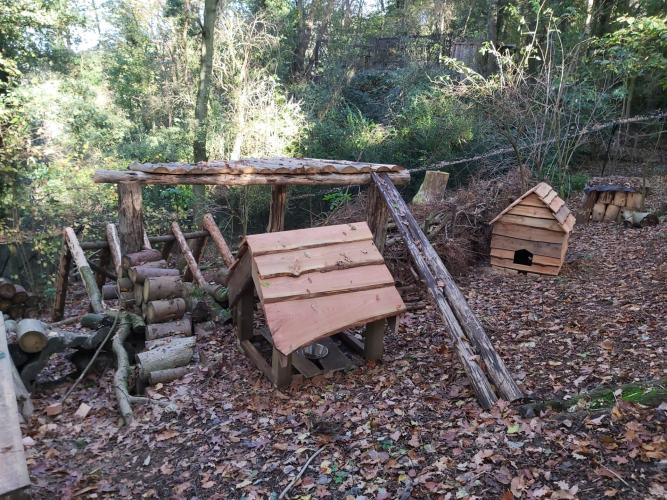 Ondertussen werkten de staf en vrijwilligers van Animal Rights hard om de poolvossen een nieuw thuis te geven bij SOS Wilde Dieren in Geraardsbergen. Een bestaand verblijf van ruim 600 vierkante meter in een bosrijke omgeving werd er omgetoverd tot een leefomgeving waar deze vossen zich kunnen uitleven en de best mogelijke verzorging zullen krijgen. Daarom werd de bestaande omheining hersteld en verstevigd. We richtten ook speciale schuilplaatsen in voor de nieuwe bewoners. Alles hebben we in het werk gesteld om het leven van deze dieren er zo veilig en aangenaam mogelijk te maken. Animal Rights is SOS Wilde Dieren zeer dankbaar voor hun bereidheid om deze dieren op te nemen.