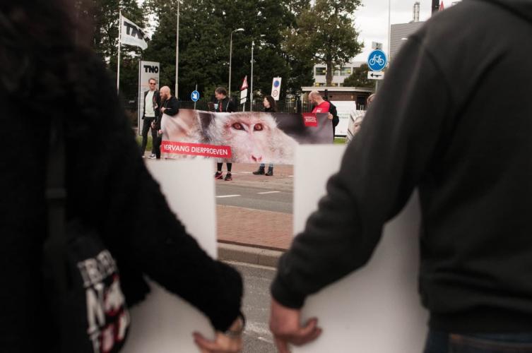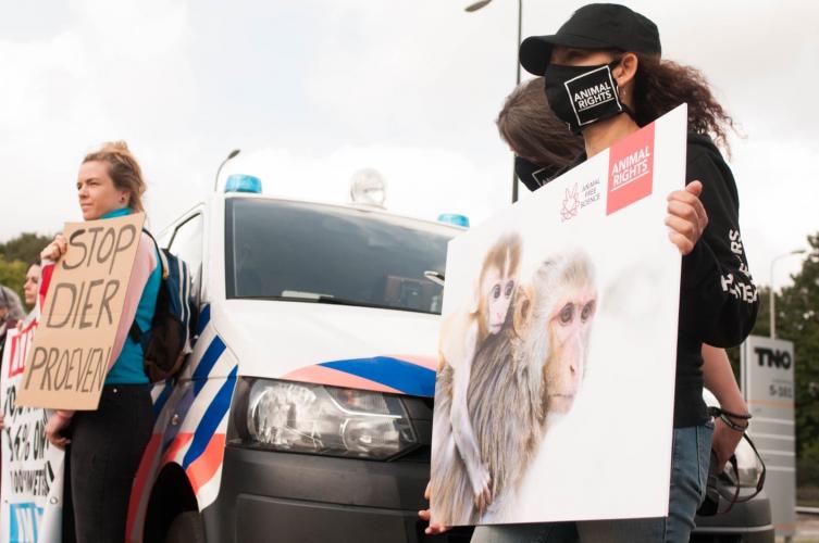 Global Anti Vivisection Protest bij het apentestcentrum BPRC