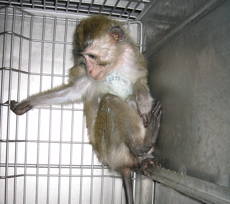 In het proefdiercentrum van het Erasmus MC worden java-apen, resusapen en groene meerkatten ziek gemaakt met virussen. De apen worden tijdens de dierproef in isolator-kooien gestopt. Het gaat hierbij om speciale kooien met luchtfilters die voorkomen dat virussen zich verspreiden maar ze bieden de apen amper bewegingsruimte.