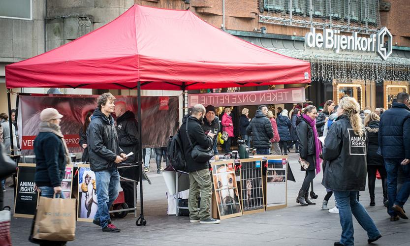 Animal Rights heeft voor de aankomende zes maanden maar liefst 20 informatiestands gepland in Nederland en België.