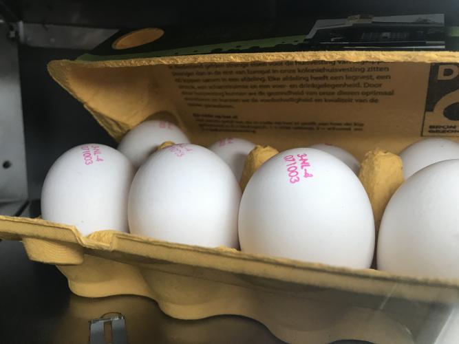 Kooi-eieren zijn te herkennen aan het eerste cijfer van de ei-code die op ieder ei gestempeld moet staan. Is dit een 3 dan gaat het om een kooi-ei (0= biologische ei, 1= vrije-uitloopei of grasei, 2= scharrelei of rondeel).