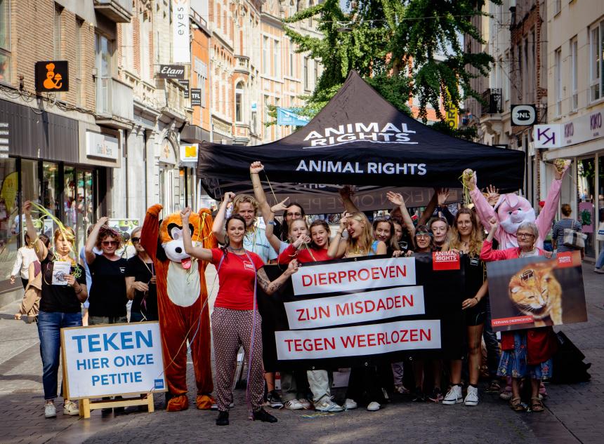 Animal Rights heeft een heel jaar lang campagne gevoerd om zo veel mogelijk handtekeningen in te zamelen. Gisteren organiseerde de dierenrechtenorganisatie nog een infostand in Leuven om voorbijgangers over dierproeven te informeren en het burgerinitiatief te laten teken. “Dit burgerinitiatief heeft enorm geholpen om het leed van proefdieren aan het licht te brengen en ervoor gezorgd dat mensen nu massaal ‘nee tegen dierproeven’ zeggen!”