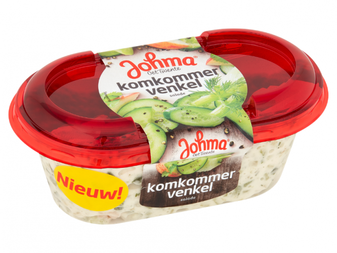 - Nieuwe vegan salades van Johma. De selderij-appelsalade was al vegan, de nieuwe komkommer-venkelsalade is dat ook. Heerlijk op brood, cracker of toast. Beide zijn alleen verkrijgbaar bij Albert Heijn. De nieuwe vegan pastasalade is bij meer supermarkten verkrijgbaar en bestaat uit penne, courgette, rode paprika, tomaat, basilicum, bleekselderij, witte kool en een kruidige tomatendressing.