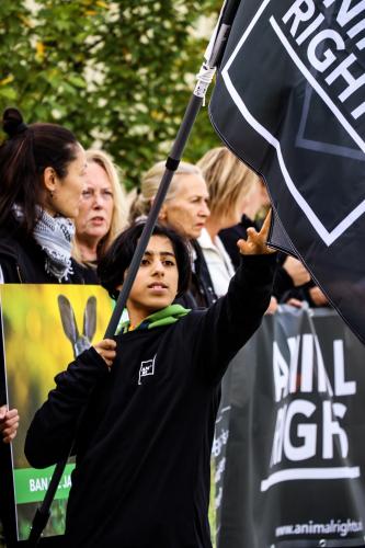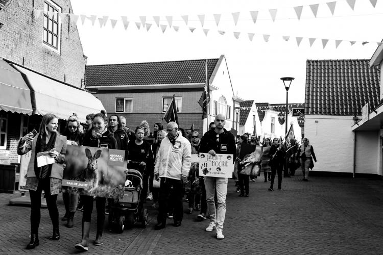 De demonstratie begon met een toespraak van campagneleider Jessica Smit: “Laten we vooral niet vergeten dat jagen een hobby is. Vrijetijdsbesteding. De jagersvereniging zelf noemt jagen een vorm van actieve recreatie met de mogelijkheid om een aantrekkelijke buit te bemachtigen.”