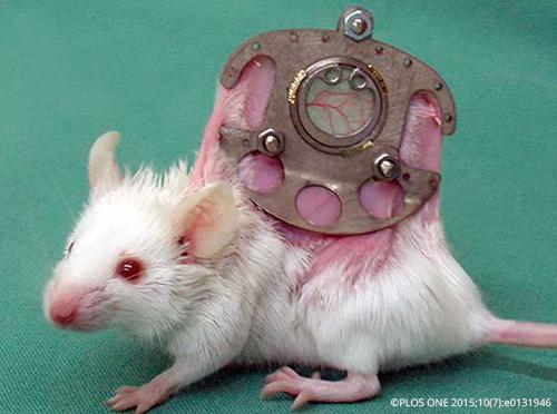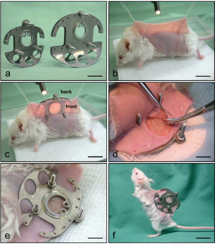 Nadien worden de muizen uitgerust met een zogenaamde ruggenhuidkamer: twee metalen frames waartussen de rughuid van de muis extreem strak wordt opgespannen en als een sandwich op zijn plaats wordt geklemd. Nadien wordt een gat gesneden in een kant van de opgerekte huid. In het midden van de metalen frames bevindt zich een doorzichtig kijkvenster waardoor de bloedvaten door de radicaal uitgerekte huid kunnen worden geobserveerd. De muizen moesten 10 dagen leven met het enorme metalen frame op hun rug. Op het einde van de rit werden alle dieren afgemaakt.