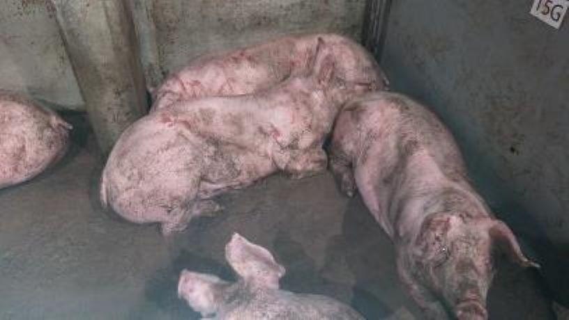 • Een verzamelruimte is donker met glimmende vloer door het water dat gebruikt wordt voor het drijven waardoor varkens weigerachtig zijn om de ruimte te betreden; De vloer van opdrijfgang is beschadigd; In het laatste deel van de opdrijfgang wordt te frequent en regelmatig hardhandig gebruik gemaakt van voorwerpen om de varkens vooruit te drijven. Letsels (krassen, afdrukken) werden sporadisch op het karkas waargenomen; In het laatste deel van de opdrijfgang is er veel lawaai;