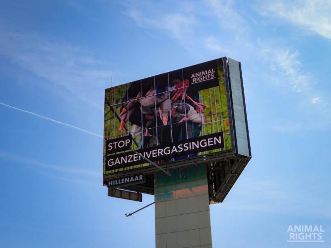 In 2024 hebben we een grootse media campagne gevoerd door middel van advertenties op reclamemasten langs de snelweg. Ook hebben we focus gelegd op het informeren van het publiek over deze afschuwelijke vergassingen door middel van lezingen. Animal Rights wil met deze campagne aandacht vragen voor het leed wat ganzen ondergaan tijdens de jaarlijkse ruivangsten en de brute vergassingen die hierop volgen.