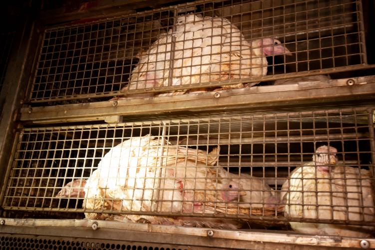 De dieren in de vrachtwagens waren allemaal hennen zo'n 15 à 16 weken oud: de slachtleeftijd voor vrouwelijke kalkoenen. Je ziet duidelijk zichtbare gehavende snavels die door het snavelkappen verminkt werden. Snavelkappen is een techniek waarbij op de eerste levensdag van het kuiken, de punt van de snavel verwijderd wordt. Dit soort verminking wordt toegepast in de industriële veehouderij om verenpikken en het kaalplukken van elkaar te voorkomen. De snavel is een belangrijk lichaamsonderdeel dat vol zenuwuiteinden zit en intensief gebruikt wordt bij het scharrelen en bij sociaal contact. Het is dan ook onethisch om de snavel te verminken.