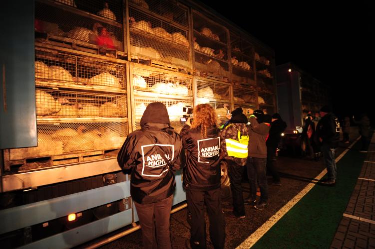 Op vrijdagnacht 28 februari van middernacht tot drie uur ’s nachts stonden Animal Rights en All For Animals samen met zo’n 23 activisten voor de poorten van het kalkoenenslachterij Volys Star in Lendelede om te demonstreren tijdens een nachtelijke wake. Dit was de allereerste kalkoenvigil in ons land. Met de actie maakten de organisaties een statement tegen het dierenleed dat gepaard gaat met het consumeren van vlees. “We vragen aandacht voor het verborgen dierenleed in de kalkoenenindustrie. Jaarlijks worden meer dan 730.000 kalkoenen geslacht in ons land. 1 Vrijdagnacht gaven wij de dieren een laatste blijk van mededogen voor ze het slachthuis binnen gingen”, zegt Animal Rights campagnecoördinator Els Van Campenhout. 2 3 4 5 6 7