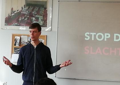 Gastlessen: help ons leerlingen bewust te blijven maken Nieuws: 14 december 2020 Vijf gastlessen op rij voor leerlingen van 3 HAVO en 3 VWO laten zien dat het werk van Animal Rights hard nodig is.