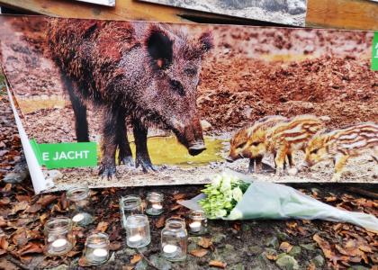 Maandag 20 januari werden de everzwijnen in het Meerdaalwoud in Leuven afgeschoten. Animal Rights voerde actie met bloemen en kaarsen als laatste eerbetoon aan de slachtoffers van de jacht.