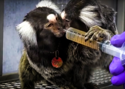BPRC onderzoekers injecteren gezonde penseelapen meerdere malen per week in de buik om de symptomen van Parkinson op te wekken. De dieren verliezen gewicht, worden apathisch en zitten trillend in hun kooi.