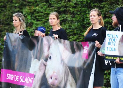 Op woensdag 28 augustus voerde Animal Rights samen met The Save Movement en All For Animals en Bite Back actie voor de poorten van het varkensslachthuis in Tielt, dat twee jaar geleden bekend werd dankzij de gruwelijke undercoverbeelden die Animal Rights naar buiten bracht. Met de actie maken de organisaties samen een statement tegen het dierenleed dat gepaard gaat met het consumeren van vlees en willen ze de aandacht vestigen op de momenteel lopende rechtszaak tegen zowel de CEO van het slachthuis als de vennootschap achter het bedrijf waarvan de uitspraak zal volgen op 25 november van dit jaar. “Met deze actie willen we de dieren een laatste blijk van mededogen geven voor ze het slachthuis binnen gaan. En uiteraard willen we met onze aanwezigheid ook opnieuw de sluiting eisen van het Tieltse slachthuis, waar jaarlijks 1,5 miljoen dieren sterven”, zegt Animal Rights campagnecoördinator Els Van Campenhout.