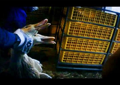 Dinsdag stond Animal Rights samen met The Save Movement en All For Animals (AFA) aan het pluimveeslachthuis Lammens NV in Torhout, om de vleeskuikens een laatste blijk van mededogen te geven voor ze het slachthuis binnen gaan. De directie van het slachthuis weigerde elke samenwerking en sloot de deuren. Dat ze de uurregeling aanpassen omdat er vandaag een actie plaatsvindt zegt genoeg, vindt ook campagnecoördinator Els Van Campenhout: “Als het slachthuis niets te verbergen zou hebben, zouden ze niet zoveel moeite doen om alles te verstoppen achter gesloten deuren.”