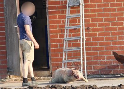 Animal Rights heeft beelden gemaakt in een Vlaams varkensbedrijf waar te zien is hoe een werknemer dode varkens uit de stallen sleept, om ze vervolgens respectloos als afval aan de straatkant te gooien voor ophaling.
